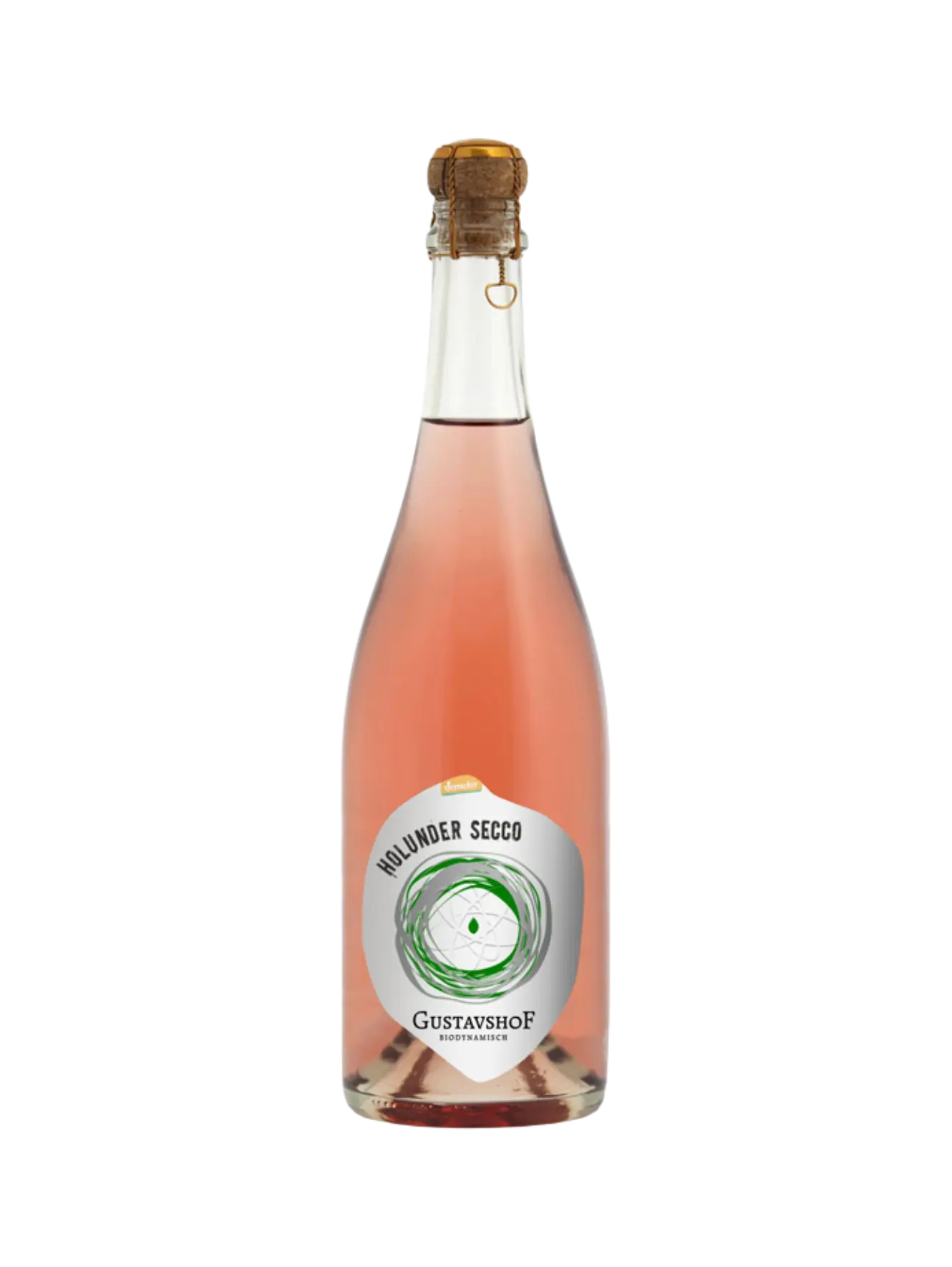 Holunder Secco od Gustavshof to bezalkoholowy, lekko musujący aperitif w stylu proxy-wina. Biodynamiczny, robiony ręcznie z kwiatów czarnego bzu i lokalnych winogron. Ma kwiatowy aromat, świeżość, subtelną kwasowość i zero sztucznych dodatków. Idealny na start kolacji, lato, brunch i momenty, w których chodzi o vibe wina – ale bez alkoholu