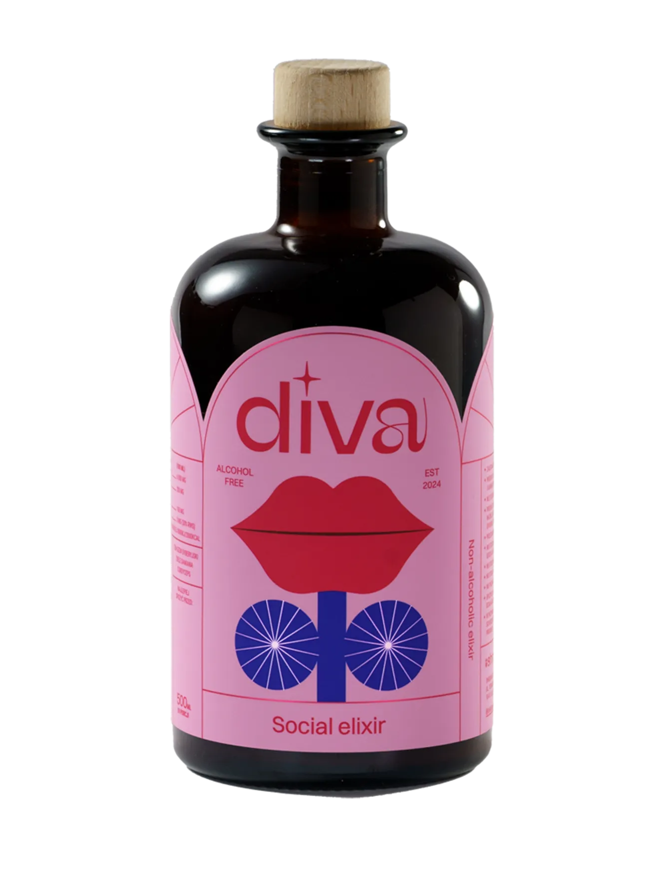 Diva Social Elixir to coś więcej niż napój - to celebracja. Z 13 składników botanicznych, adaptogenami i lokalnymi superfoods (rokitnik, dereń, aronia), Diva dodaje energii, pewności siebie i lekkości każdej chwili. Cordyceps wspiera witalność, żeń-szeń przywraca równowagę. Dzięki dodatkowi jadalnego brokatu, zamienia koktajl w małe dzieło sztuki.