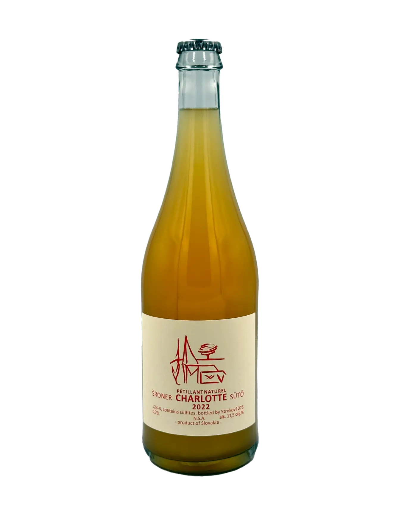 Strekov 1075 Charlotte 2022 to wynik współpracy Šroner & Sütö. Elegancki, organiczny Pet Nat z Chardonnay ze Słowacji. Fermentacja spontaniczna w stali zapobiega nadmiernej interwencji – butelkowany w trakcie fermentu, bez siarki i filtracji. Intensywna kwasowość i kremowa tekstura łączą aromaty cytrusów, brzoskwini i biszkoptowego finiszu . Za projektem stoi Zsolt Sütő z winnicy Strekov 1075 – promotor naturalnego winiarstwa z biodynamicznym podejściem, z ręcznie zbieranymi winogronami i fermentacją ancestralną